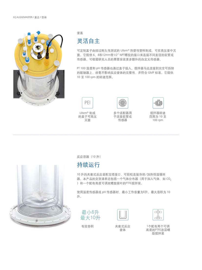 德國(guó)艾卡IKA光照生物反應(yīng)器,防海水腐蝕且完全可高壓滅菌的帶有9個(gè)連接口的自定義釜蓋和釜體,無金屬組件,適合培養(yǎng)敏感活性生物體,接觸培養(yǎng)物的材料,可控制光照、溫度、攪拌、pH,氣體和液體的定量補(bǔ)料,可通過U盤輕松手機(jī)數(shù)據(jù)。