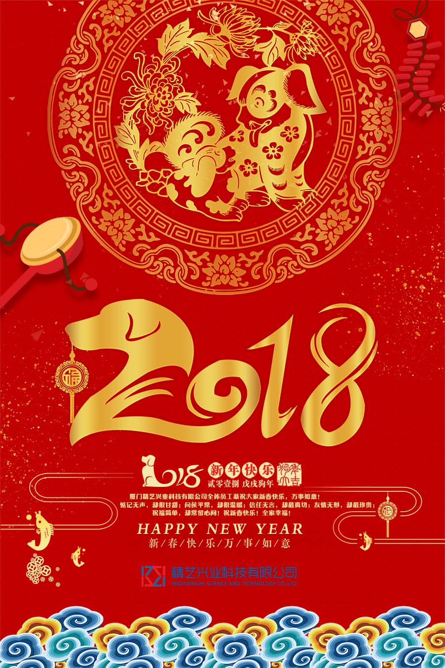 金雞鳴啼辭舊歲,玉犬搖尾迎新年。辭舊迎新,歡度新年。這一刻,五湖四海人聲鼎沸歡聲雷動(dòng)那一瞬,精藝興業(yè)從廈門(mén)鷺島捎來(lái)如意吉祥幸福安康!