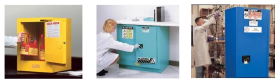 目前,消毒用品大部分企業(yè)使用的是75%的酒精和84消毒液。酒精學名乙醇,是一種易燃易揮發(fā)液體,當空氣中的酒精含量達到19%,溫度等于或大于13℃以上時,遇到火星就會閃燃。84消毒液屬于含氯消毒劑,是以次氯酸鈉(NaClO)為主要有效成分的消毒液,有一定的刺激性與腐蝕性,必須稀釋以后才能使用(按照說明書)。這兩種消毒產品嚴禁敞開放置,且必須存儲在專業(yè)的安全柜中。比如酒精,可以存放在黃色的防火安全柜中,通過獨立的防火測試和FM認證,確保?;返陌踩綦x和管理。弱酸類的危化品如酚類消毒劑、環(huán)氧乙烷可以選擇腐蝕品安全柜,而強酸類的可存放在危險品安全柜中。精藝提供的安全柜款式豐富,可滿足不同的應用場景。